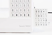 The Sewist 740DC has many useful features. Direct stitch selection is available for 20 stitches and 20 are pictured on the easy access slide-out stitch chart.