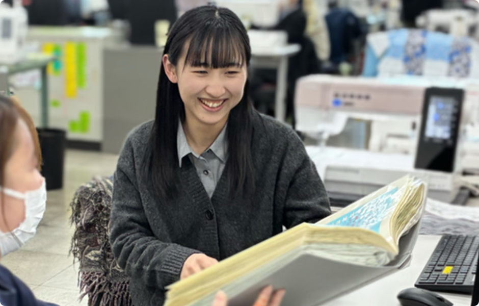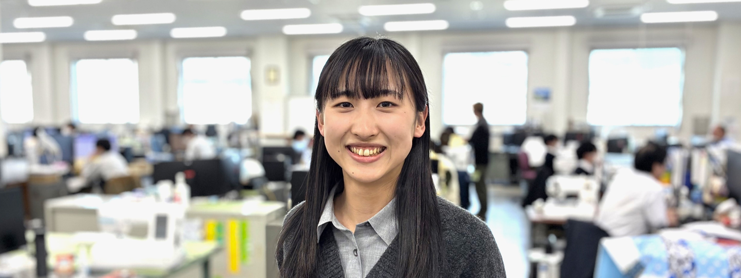 高専向けの企業説明会で偶然目に留まったのが、ジャノメに入社したきっかけです。手芸好きな家族に囲まれ、小さい頃から手芸や縫いものが遊びのひとつだったので、ジャノメという文字には元々親しみがありました。さらに、企業説明会でミシンのソフト開発についての詳細を知り、高専時代の学びを活かしながら趣味のハンドメイドに関わる仕事ができる点に魅力を感じました。メーカー志望で就職活動をしていましたが、東京に本社と工場があり、新卒時期に生活環境を大きく変えずに済む点でもジャノメはとても魅力的でした。就活中の会社見学では工場や開発部門のオフィスの見学、先輩社員への質問の機会もしっかりと設けられていたので、入社後は大きなギャップもなく働くことができています。