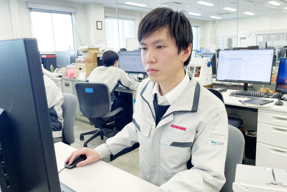 入社一年目、希望していた産業機器部門に配属され、先輩社員を補助する役割をこなしながら、技術や知識を吸収していきました。二年目には、新製品である「自動ねじ供給機」の開発に携わることができました。これは、ねじを自動で整列させ、素早く安定したねじの供給を行う機器で、開発は、ゼロからのスタートでした。組み立て不良や部品の損傷など予期しないことの連続で、試験終了まで苦難の道のり。そこから学んだのは、早道はないということ。一つひとつ丹念に対処することから打開策は見いだせるのだと、身をもって知りました。その後、三年目には、この新製品の生産拠点であるタイに単身で出張。不具合や障害への対策、改善の指示など、新たな問題が発生したとき、その場で自ら考え、対応しました。本当に良い経験で、若手にもかかわらず、重要な役割を任せていただけたことに感謝しています。