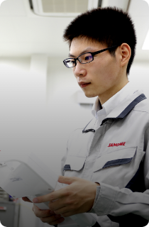 ジャノメは、家庭用ミシンメーカーであり、同時に産業機器メーカーとして、世界各国で高品質な製品を提供しています。その活動を推進しているのが、確かな技術力。既成概念にとらわれない発想と、お客さま目線の開発姿勢によって、常に新たな価値の創造に挑戦してきました。ジャノメの技術職としての「やりがい」や「難しさ」は、ものづくりと誠実に向き合っているからこそ感じられるものです。