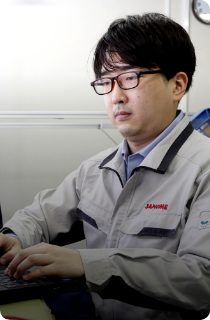 産業機器製品の問い合わせ対応や客先仕様のカスタム対応、そしてメンテナンス対応(修理・点検・改造)などが主な業務内容です。産業機器営業部の技術的なサポートを担当しています。客先によって産業機器の用途や使用環境はさまざま。実は、製品単体をそのまま生産現場で使用していただくのは難しく、製品の改造・ツールの取り付けなど用途に合わせたカスタム対応が必要になります。技術営業担当者は、お客さまからしっかりとヒアリングを行い、量産品ではなくお客さまの要望に合わせた一品物にカスタマイズし納品しています。